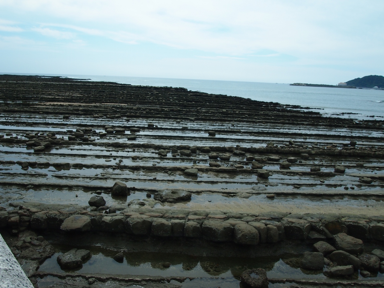 真っ直ぐな一本道を歩くと、サイドは海や鬼の洗濯岩!