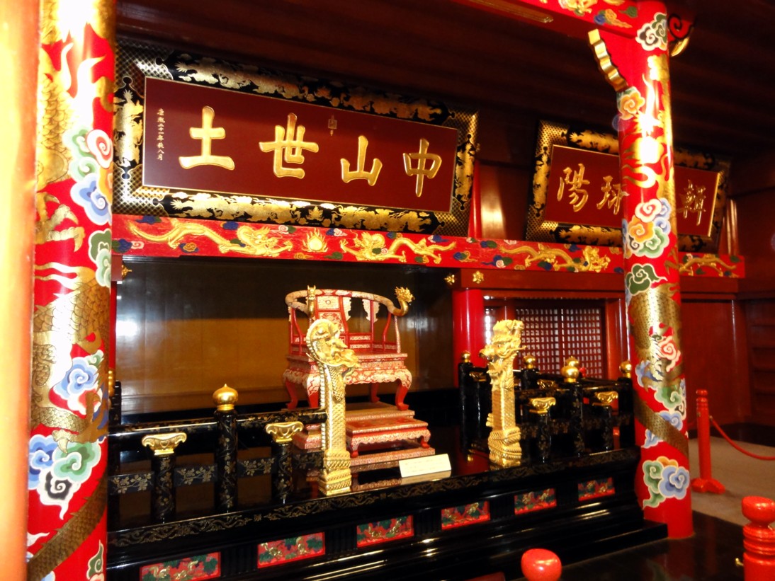 正殿2階の御差床(うさすか)があります。国王の玉座として様々な儀式や祝宴が行われたところです。
