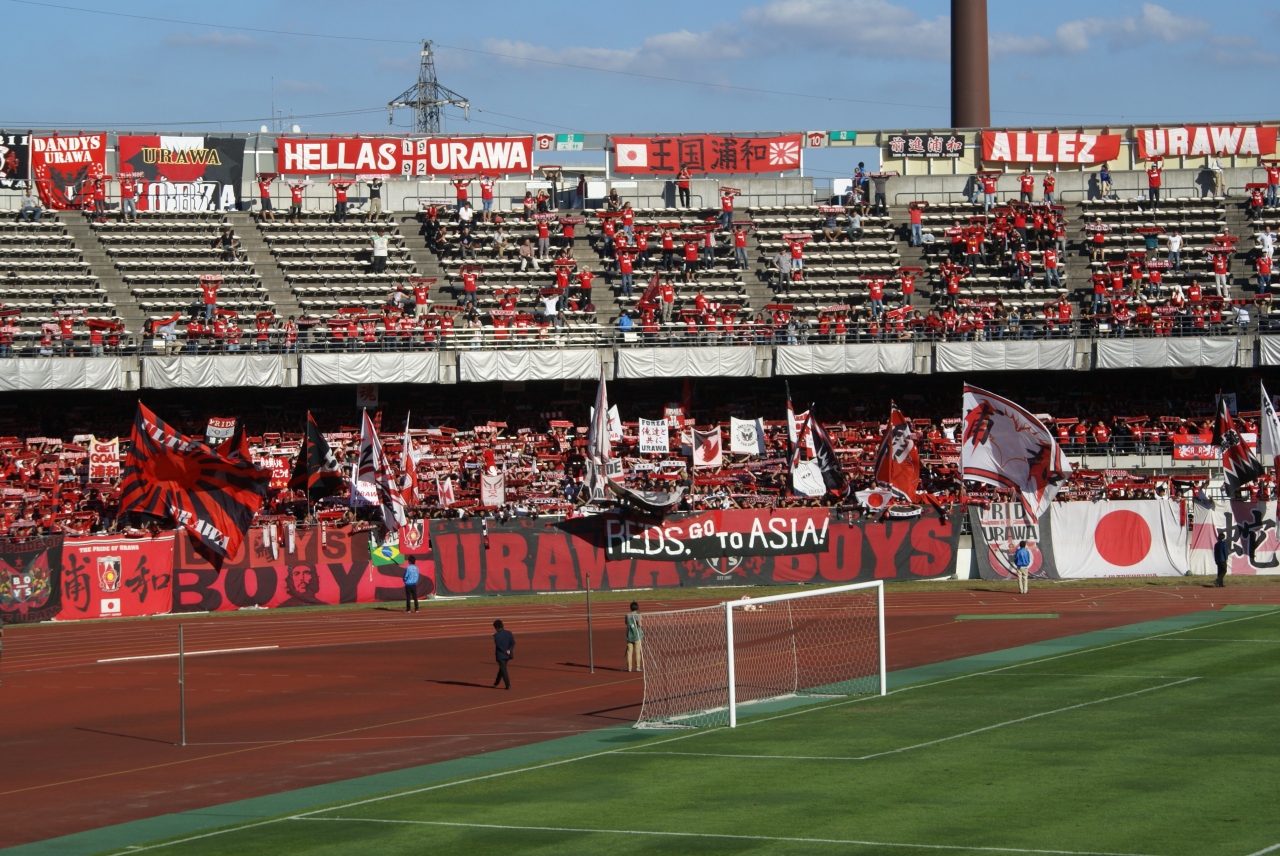 浦和レッズの聖地です。埼玉スタジアムができてからは開催試合が少なくなりました。年に数試合と踏ん張ってくれたのですが、今ではJリーグ戦の試合の予定はなくなりました。あと期待は天皇杯ですか。スタジアムは独特の雰囲気です。アウェイのチーム応援は出島と呼ばれる狭いエリアに押し込められます。