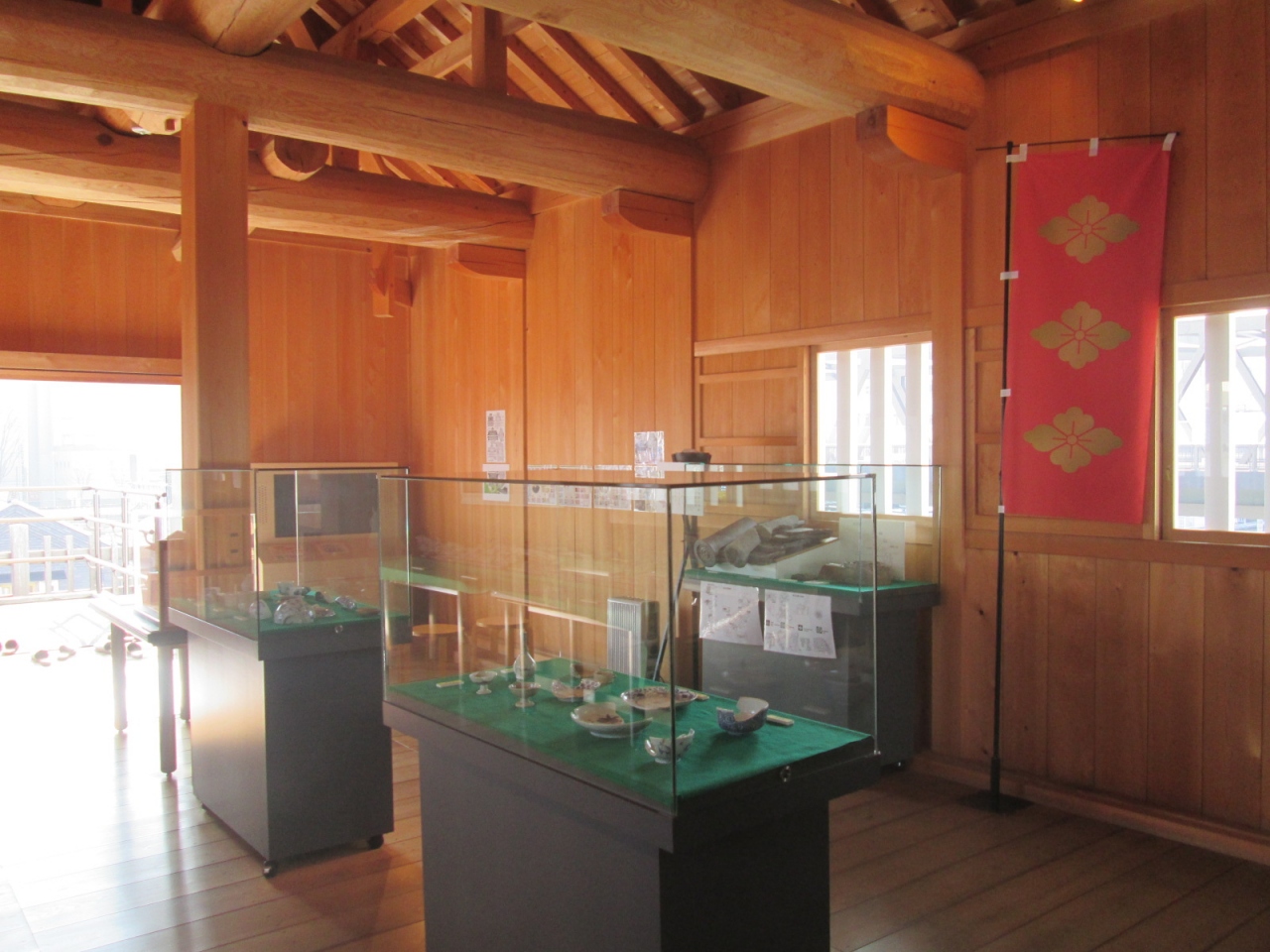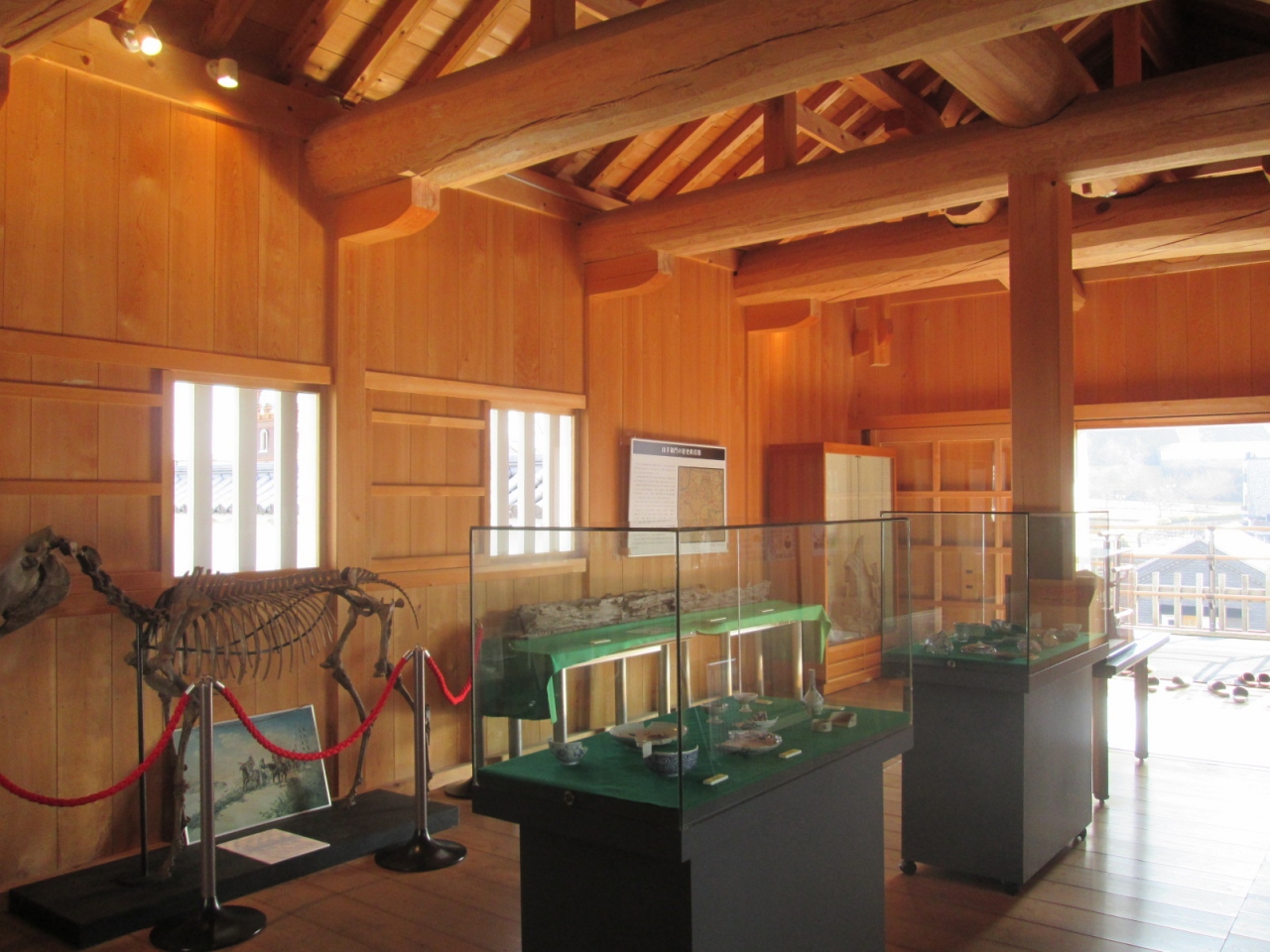 「甲府城(舞鶴城公園)」を見学し、「甲府」駅へ戻る道の途中に立派な城門を見つけたので、早速見学してみました。この「山手御門」は城門としての「山手門」と武器庫としての「山手渡櫓門」との総称であるらしいのですが、この時は通り沿いの「山手渡櫓門」のみを見学し、その側面にあった「山手門」には気づきませんでした。さて、かつて武器庫として用いられていた「山手渡櫓門」の2階部分は展示スペースとして利用されていますが、展示品は多くはありません。ただボランティア・スタッフの方から「甲府城」についてのお話をうかがうことが出来ましたので、こちらで知識を仕入れてから「甲府城(舞鶴城公園)」に向かうのも良いかも知れませんね。