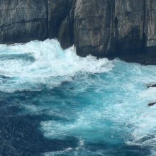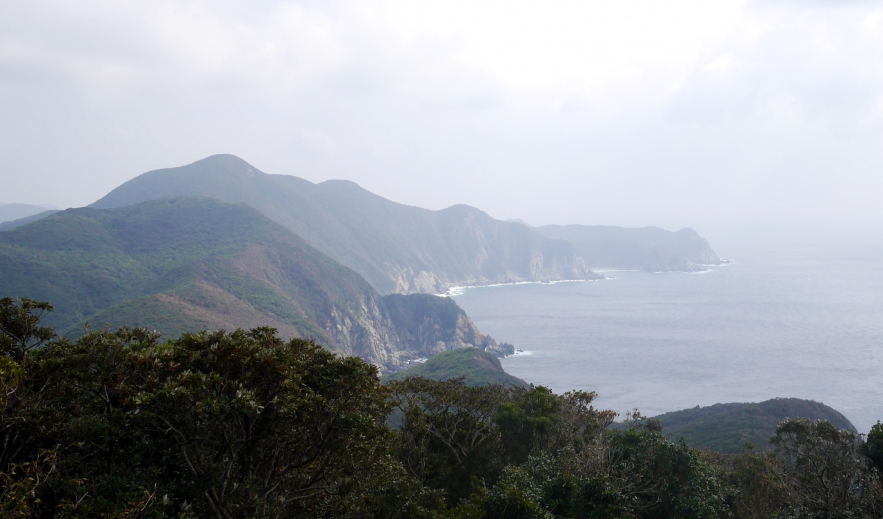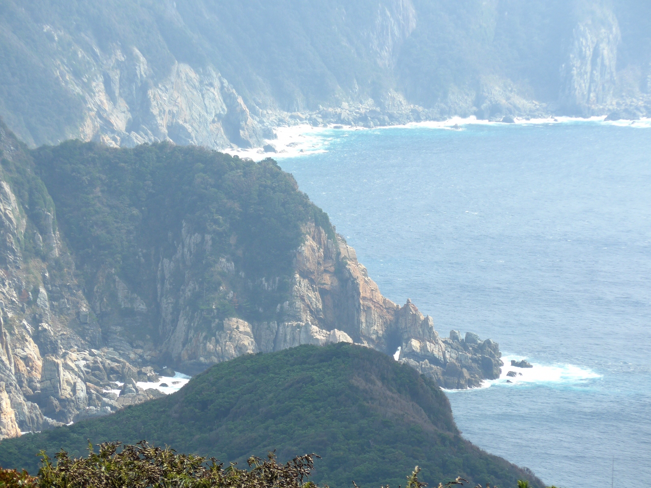 大瀬崎まではなかなか徒歩で行かなければならないし,遠望で見た方が美しい.玉ノ浦からの上り道を大瀬山の大瀬崎園地から展望することになるが,その駐車場より手前50m位のところの展望台の方がよく見えてすばらしい.断崖にぶつかる荒波もよく見える