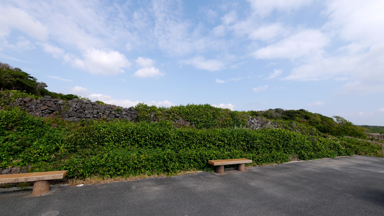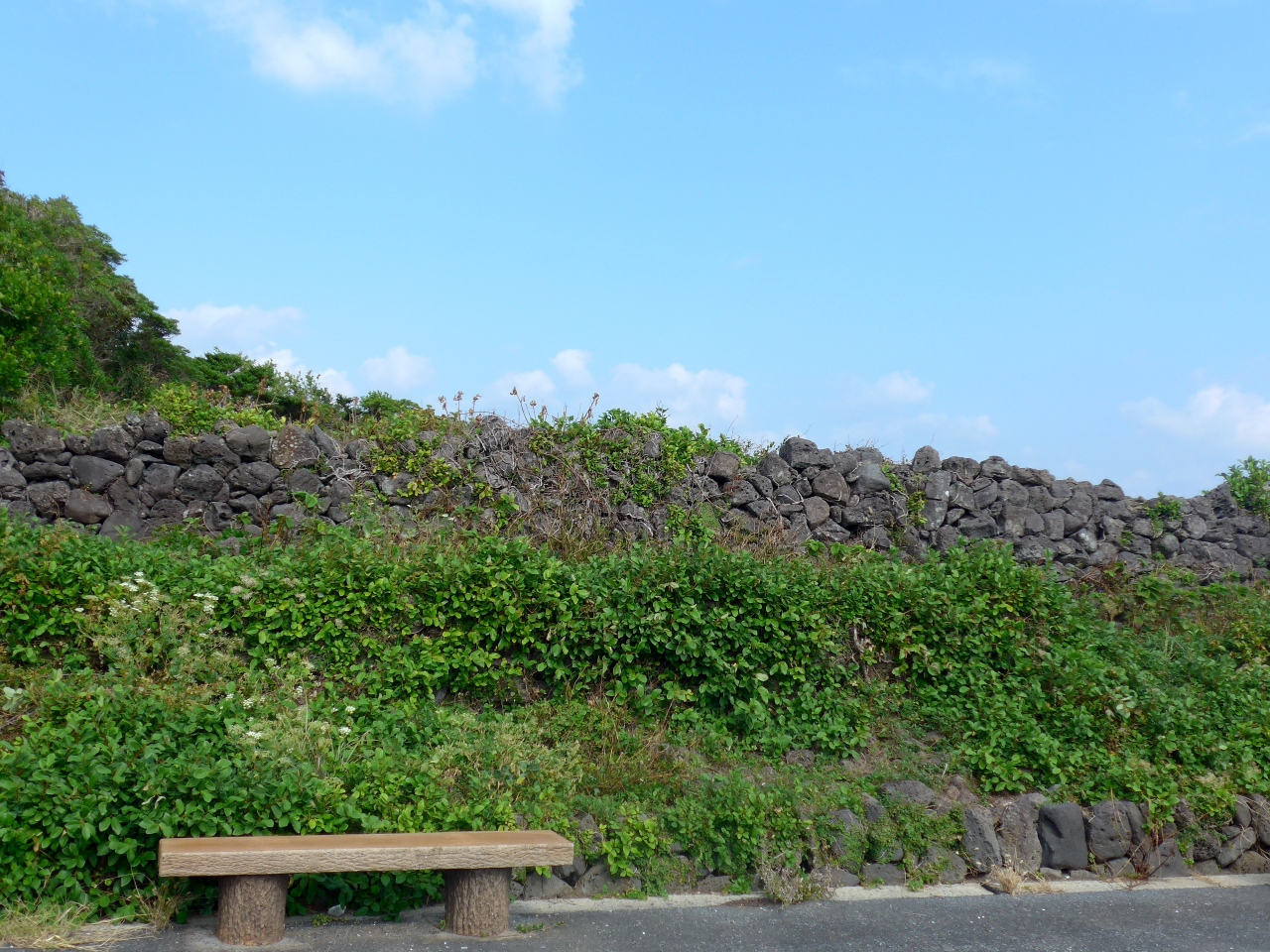 荒々しい海の前の土塁だけ残ったところだが,レンタカーなら行ってもいい場所