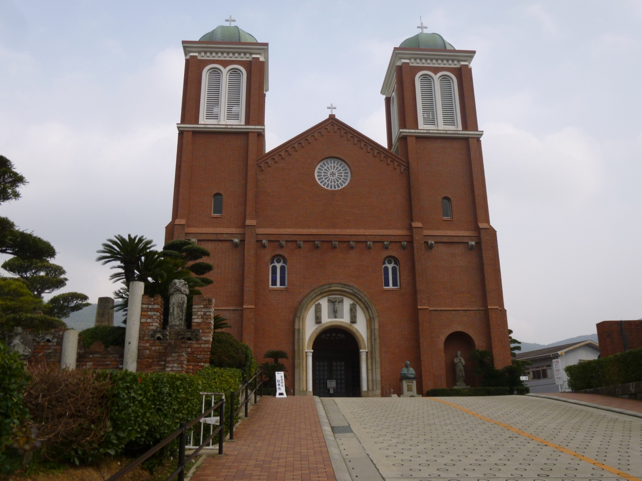 キリスト教弾圧に耐え続け、明治維新後、浦上の信者達が建てた天主堂です。30年もの長き歳月をかけて造られたのですが、1945年の原爆で壊され、再建されました。大浦天主堂と違うのは、赤レンガで築かれたので、赤みのレンガ色で、教会内正面と側面のステンドグラスはブルー系で厳かな静かな祈りの場所でした。内に係員の方が居ました。内部撮影禁止です。