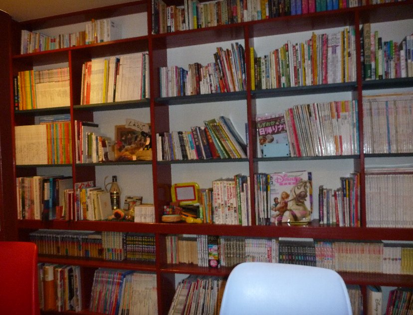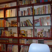 中はカラフルな部屋で、旅の本から美術の本から絵本まで、好きなものを読みながらのんびりできるスペースです。