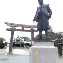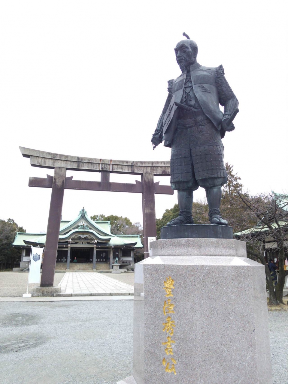 正面には、勇ましい姿の秀吉公の銅像がありました。