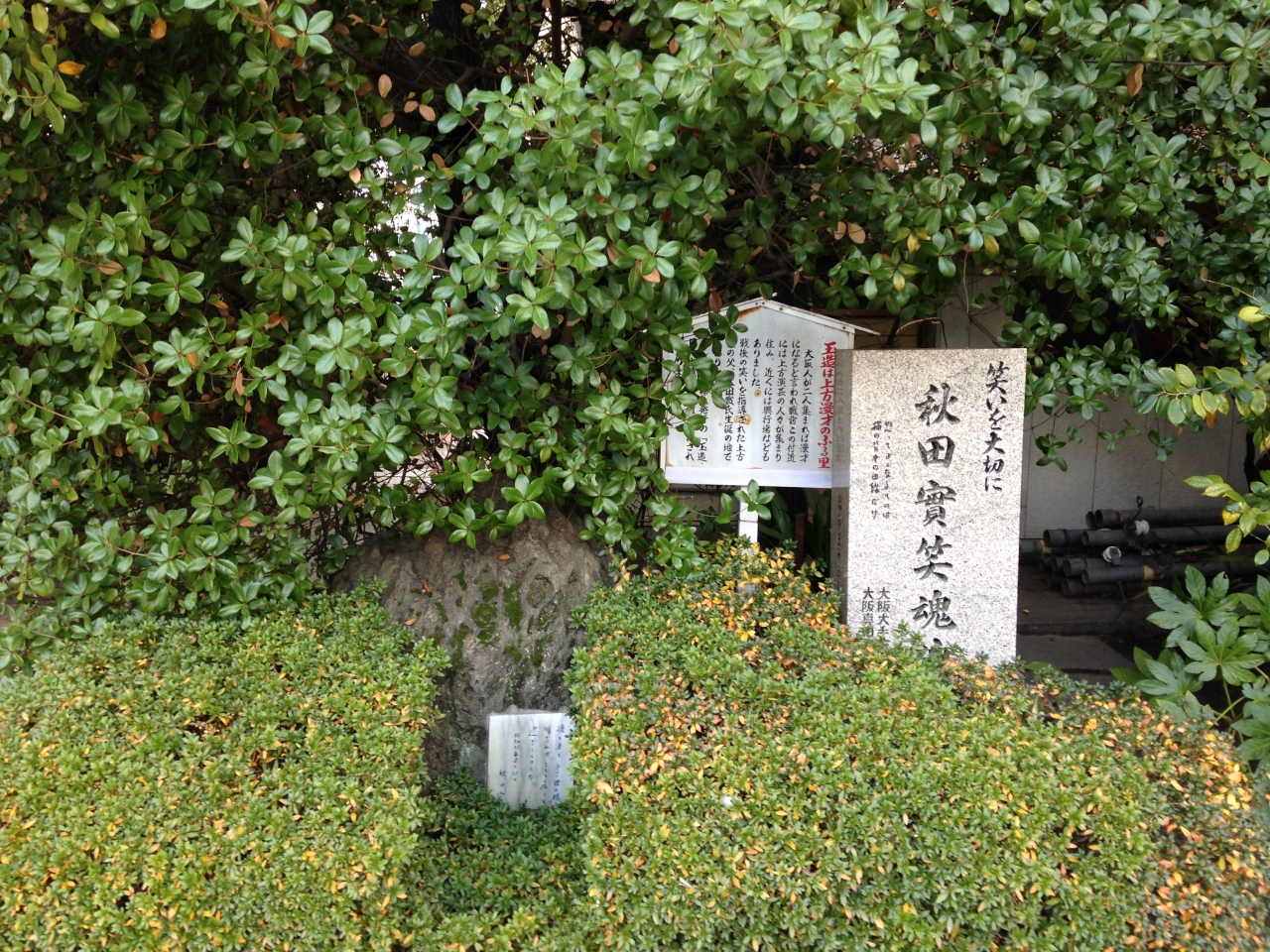 刻まれている石碑で、いつの時代も笑いや笑顔の大切さを思い出させてくれる碑です。