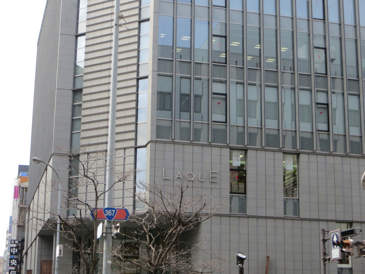 ラクエは数年前に四条烏丸の北西角に出来たファション中心のビルです。地下1Fから3Fまでおしゃれなお店が多数入っています。セレクトショップや雑貨店、エステ、地下にはワイン&バー(ヴィノスやまざき)や進々堂(イートイン可)、和雑貨のお店などが入っている地元の人に人気のスポットです。