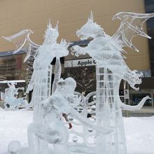 冬に訪れたところ、旭川氷彫刻世界大会の会場となっていました。2014年は2月6日(木)~11日(火・祝日)。6・7日は製作期間で、8日(土)の11時からやっと完成した氷像を見ることができました。ちょうどさっぽろ雪まつり(2月5日~11日〔2014年〕)の開催期間と重なっていて、併せて訪れる人もいるようです。