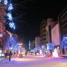 札幌に比べて、内陸の旭川は朝晩、一段と冷え込みが厳しくなります。2条通と交差する8丁目側のニュー平和ビルのところには気温を表示した電光掲示板もありました。また、通りの両側はロードヒーティングが利いていて、雪もなく歩きやすくなっていますが、長い時間居たり、ずっと体を動かさず立ち止まっていたりすると、とても寒くなってきます。そんな時は近くのお店で暖をとるのも一興。駅近くには西武などのデパートがあるほか、マクドナルドやドトールコーヒー、居酒屋などの飲食店が立ち並んでいます。2条通近くにはラーメンの梅光軒の本店もあります。果たして、支店との味の違いがあるのかどうか、確かめてみるのもよいと思います。