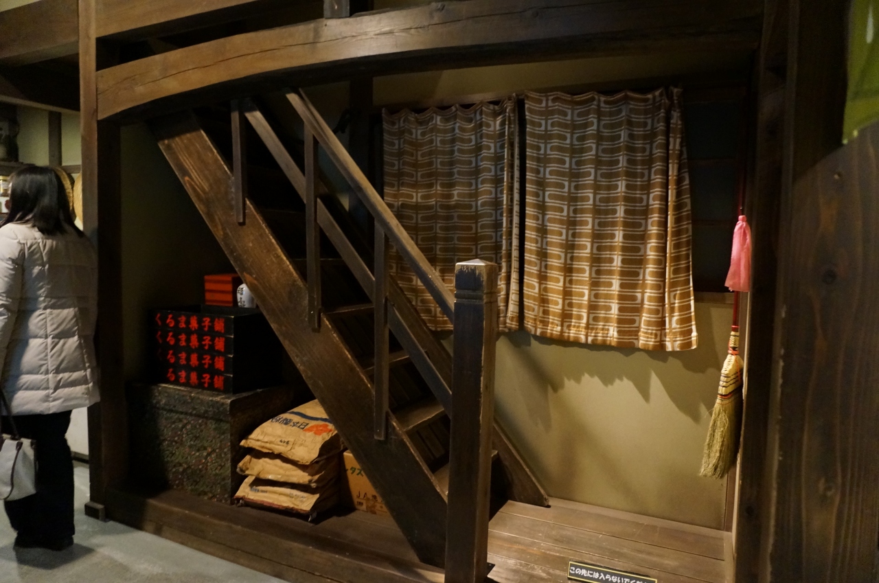 映画「男はつらいよ」のファンとしては堪らない魅力があるところです。まず、ジオラマで寅さんの人生を振り返ることができます。次には、実際の撮影に使用された「くるまや」のセットがあります。とらやのテーブル、いす、寅さんが帰ってくるとみんなで食事をした座敷、二階に上がっていく階段、裏庭、印刷工場、その実物があるのですから、堪りません。柴又の街並みの模型もあります。寅さんファンにとって、元気を貰えるところです。