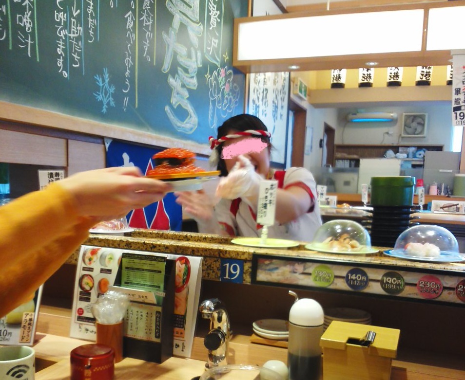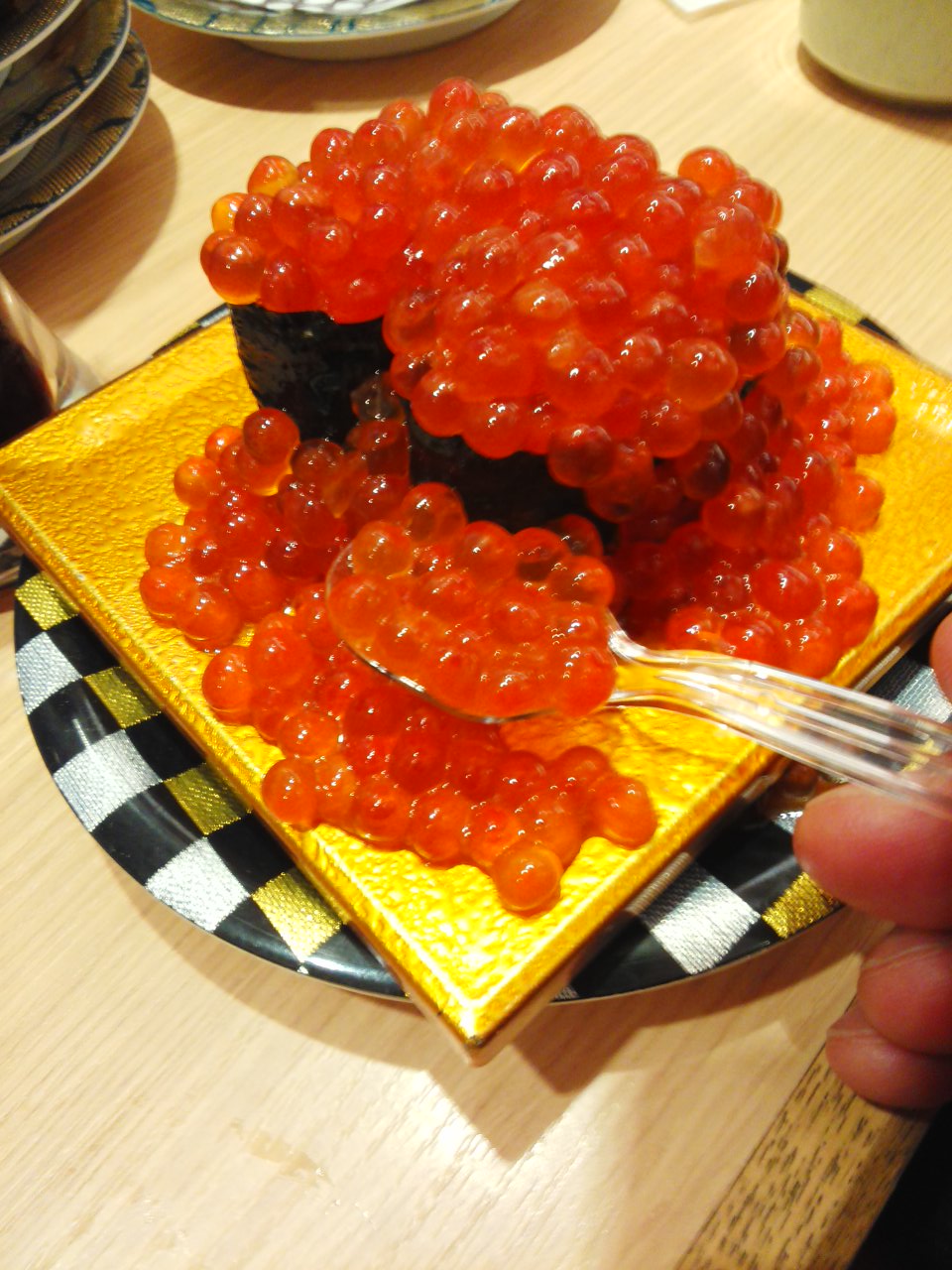 こぼれイクラを注文すると、景気よく太鼓を鳴らして、