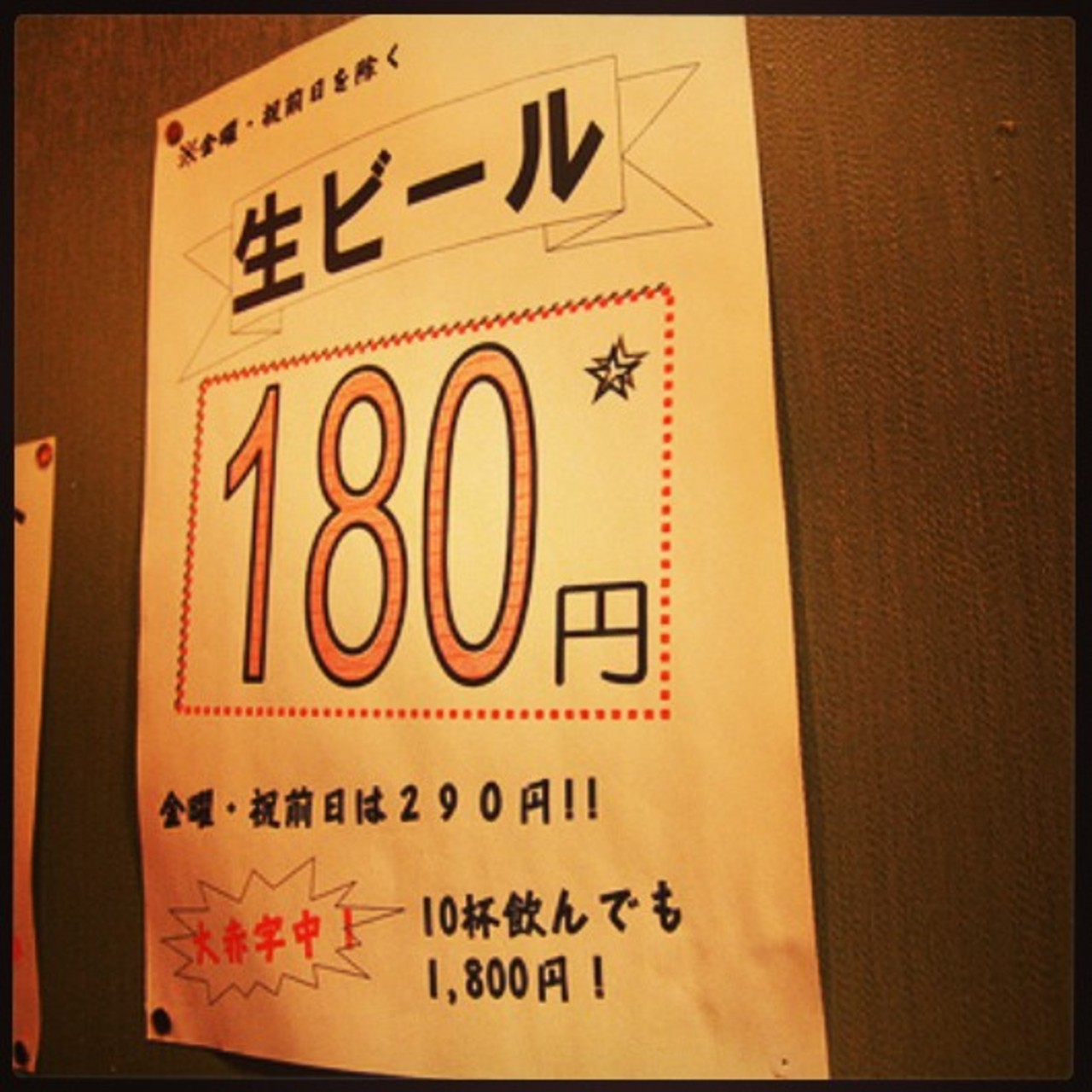 六本木エリアでビール180円は最安値かと。にもかかわらず、上等なスーツに身を包んだサラリーマンの姿が目立ちます。六本木にあるのに、新橋のノリを醸し出すお店です。フードメニューはそこまで安くないので、2次会向け。