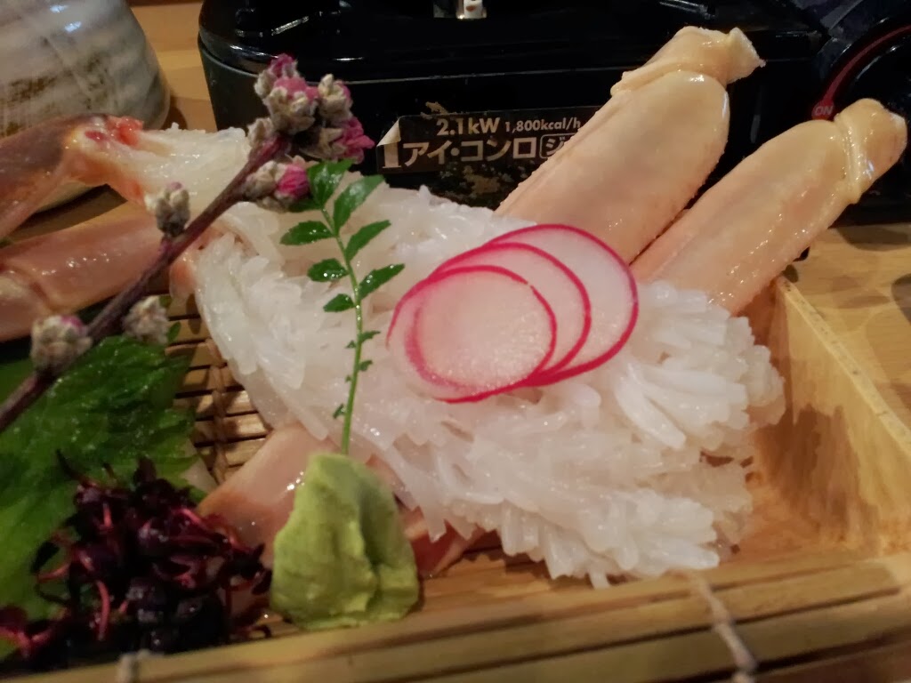 直送の松葉ガニを食べさせてくれます。事前に1匹予約していきました。2人分のいろんなかに料理を出してくれます。お刺身が大好きな私には、甘くてたまらなくおいしいお刺身でした。甲羅蒸しとお鍋を用意してくれました。はやり新鮮な松葉ガニは最高においしかったです。