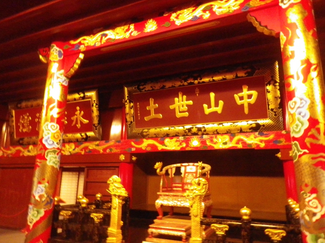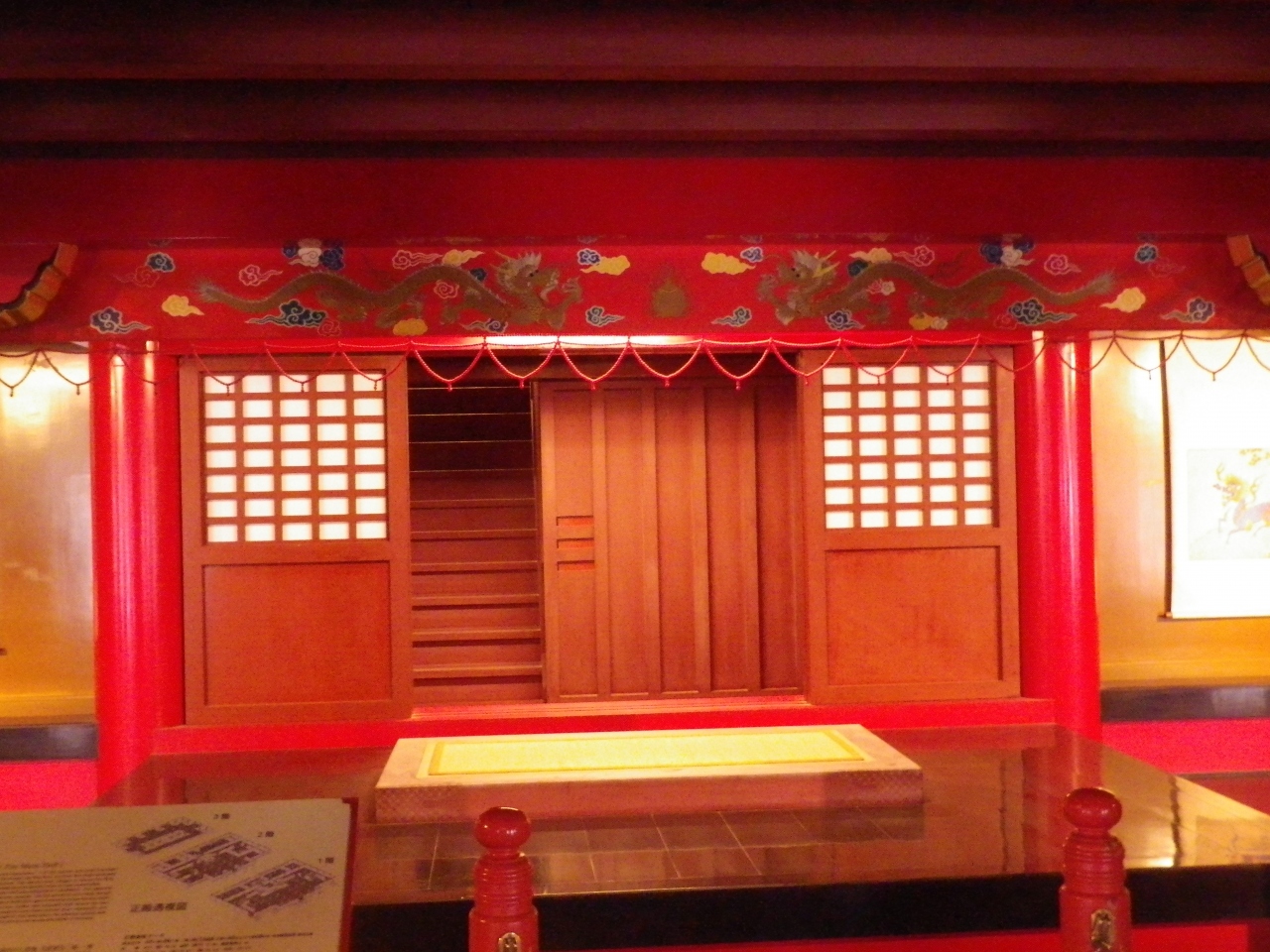 奉神門を入って南殿・番所から建物内に入って、書院・鎖之間と庭園を見た後、一番大きい正殿に着きます、1階に下庫理・御差床、2階に大庫理・御差床があります、1階の下庫理では国王が政治や儀式を執り行う場であった、2階の大庫理は王妃や身分の高い女官が使用した空間であったようです。
