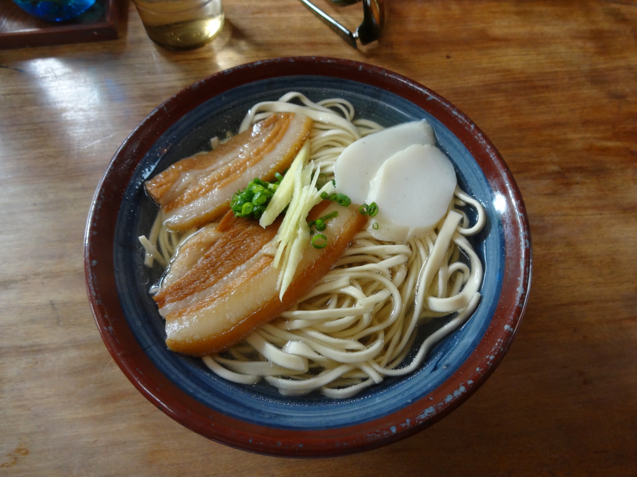 隣の方が煮付けセットを食べていて美味しそうでしたが、首里そばを注文。