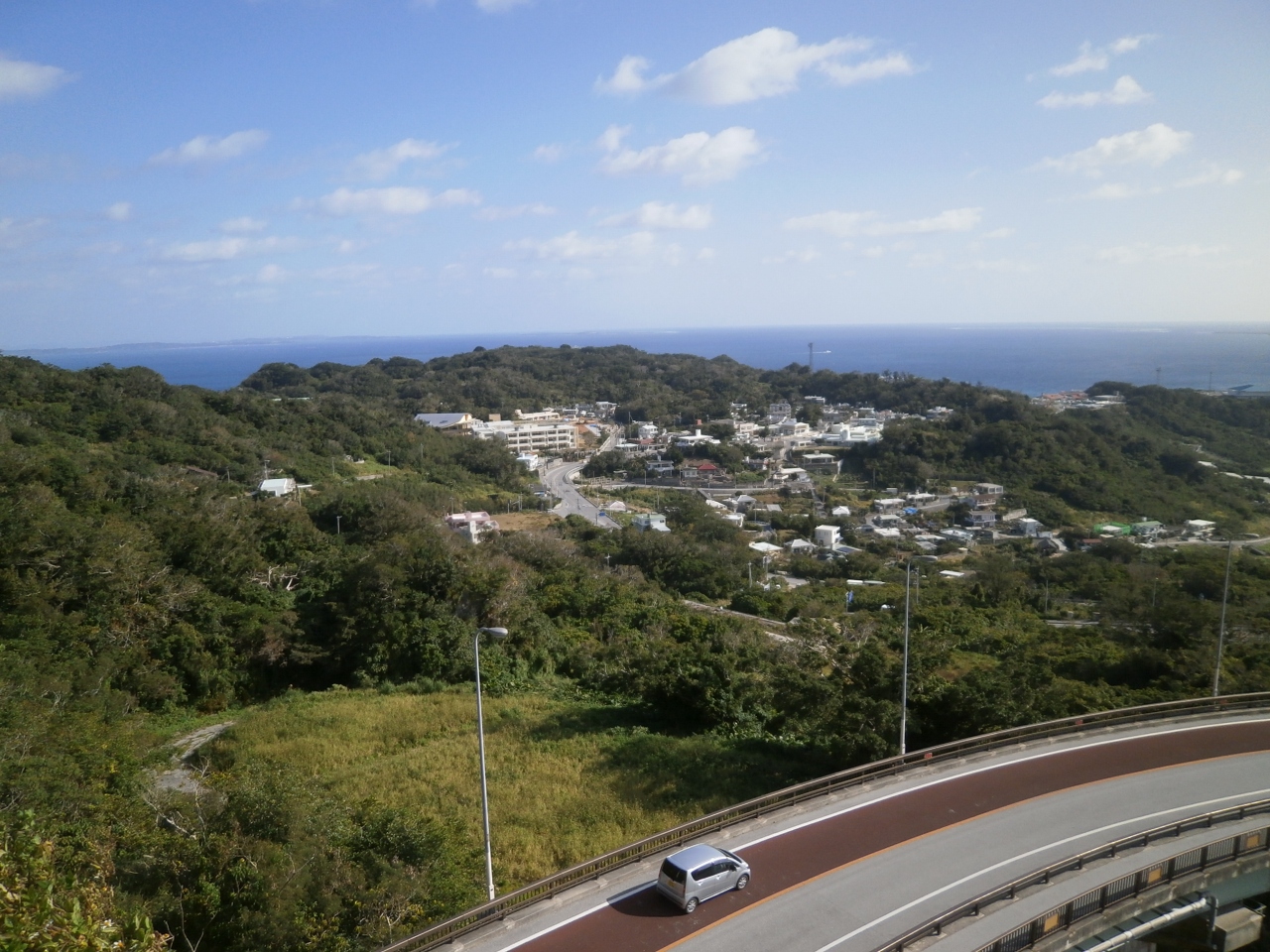「吉富」交差点から入るとニライ橋カナイ橋です。橋が終わり、トンネルを抜けてすぐに車が停められる場所があります。自衛隊の基地の関係で一般車両が入れないようなのですが、徒歩で展望台へ行くことができます。その展望台から橋全体を見渡すことができますので、ドライブがてら、ちょっと立ち止まってご覧になってはいかがでしょうか?