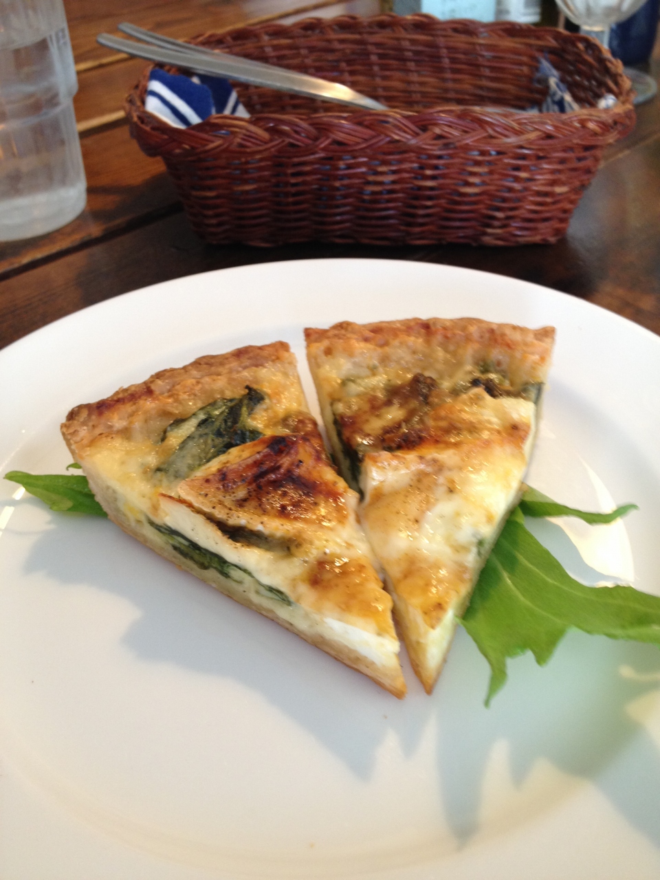 そこに、その日の黒板に書かれていた、菜の花とチーズのキッシュに、くるみとブルーチーズのピザまでオーダー!