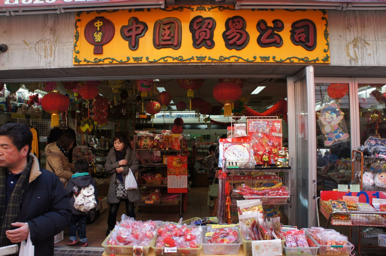 中国貿易公司は、新地中華街を入ってすぐのところ。中国の雑貨を置いている店。中華街には、時々こんな店があって、やはり街の雰囲気を盛り上げる存在。食品以外のものもありますが、お菓子の類が充実していると思います。