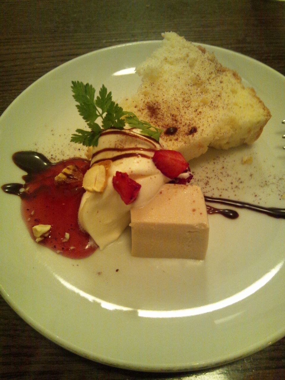 クリスロードに面した店。二階の店ですが一階から階段を上って入る感じで店が路上から見えています。夕食メニューにハンバーグとステーキがあってステーキがカフェにしては侮れない感じ。デザートのシフォンケーキも美味しい。