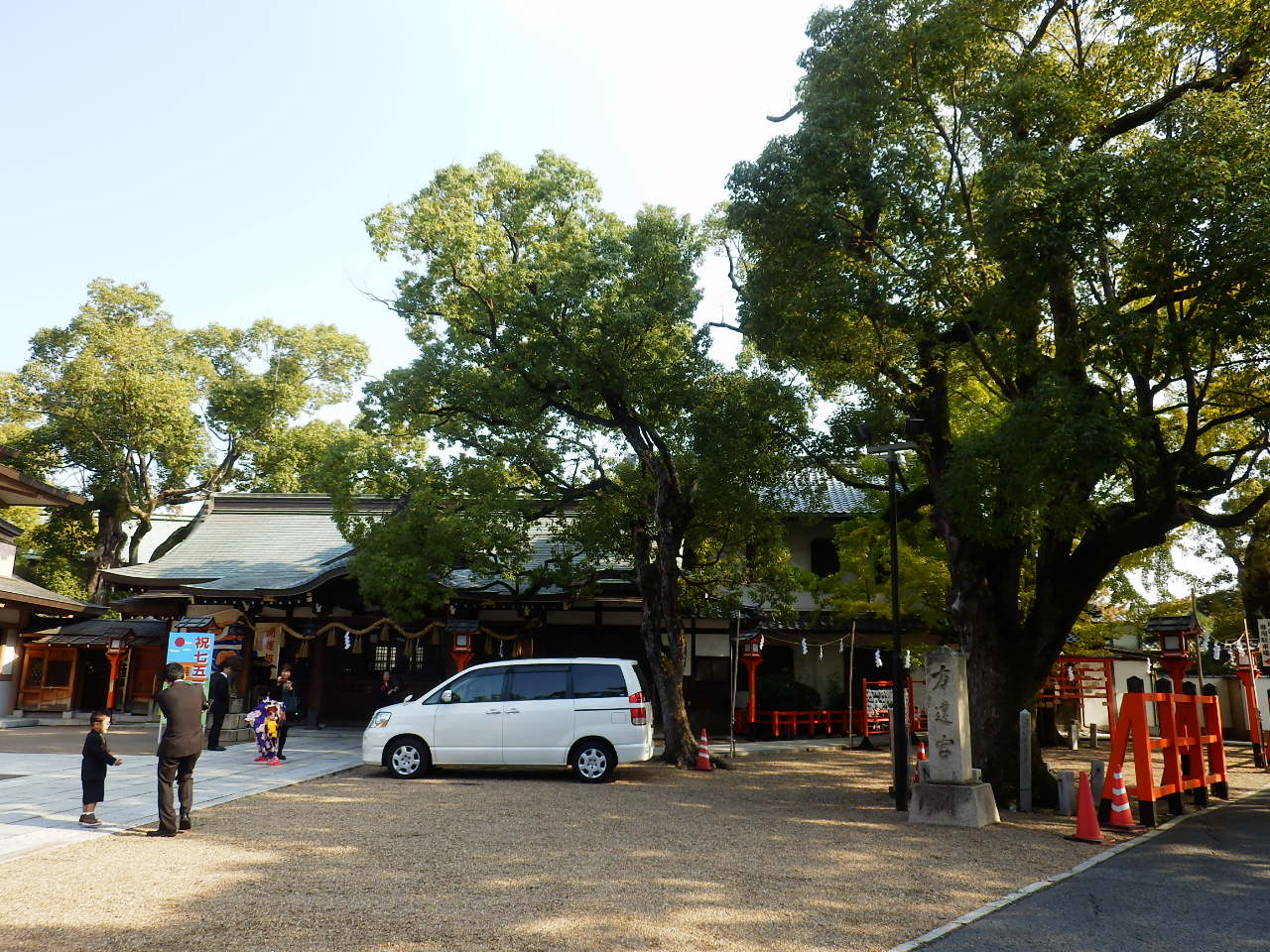 堺東駅の北側を東西に走っている大通りにある神社です 。方違は「ほうちがい」と呼びます。境内はさほど大きくなく、地元の人に愛されているような感じでした。七五三の時期に訪れたら、屋台は1軒だけ出ていて、参拝客はちらほらと車で見えていました。