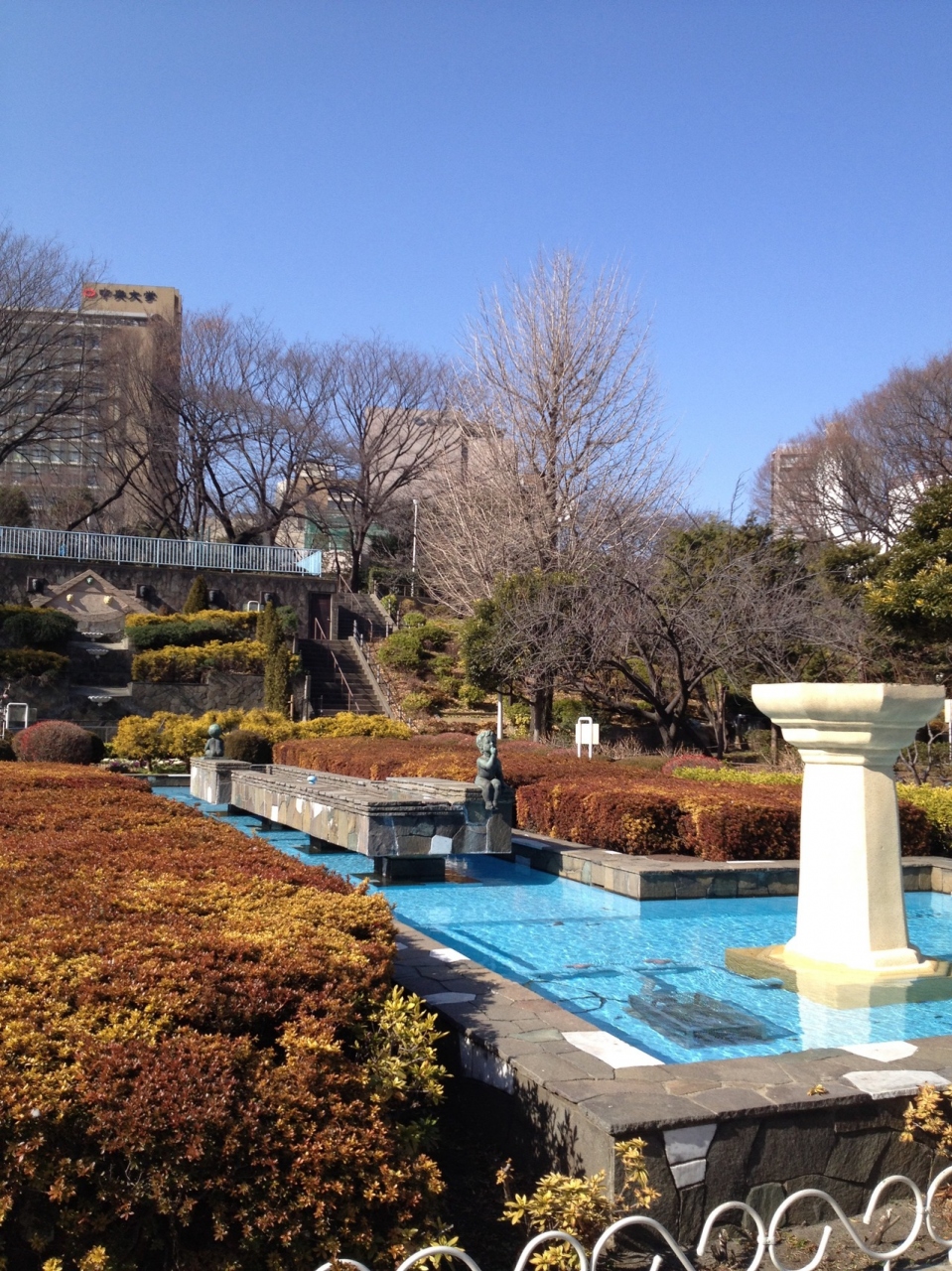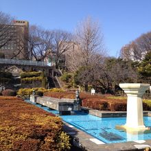 地下鉄後楽園駅に隣接している公園です。園内には段差を生かした池や噴水など水を使った感じが印象的です。