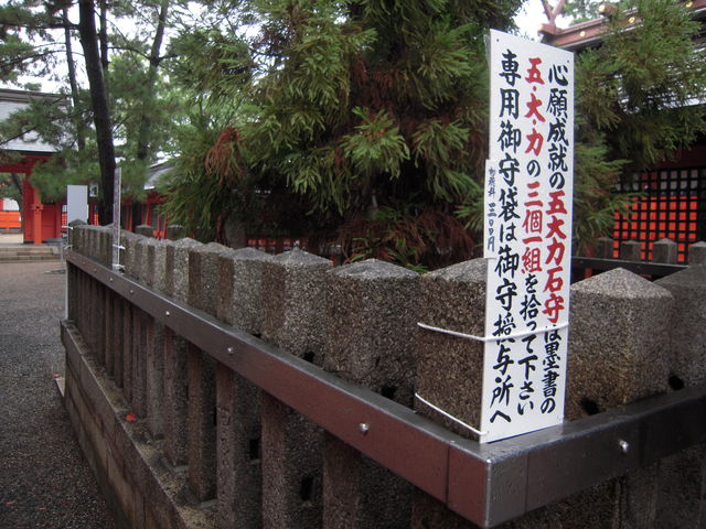 そこの玉砂利に「五」と「大」と「力」って書かれている石が混ざっている。