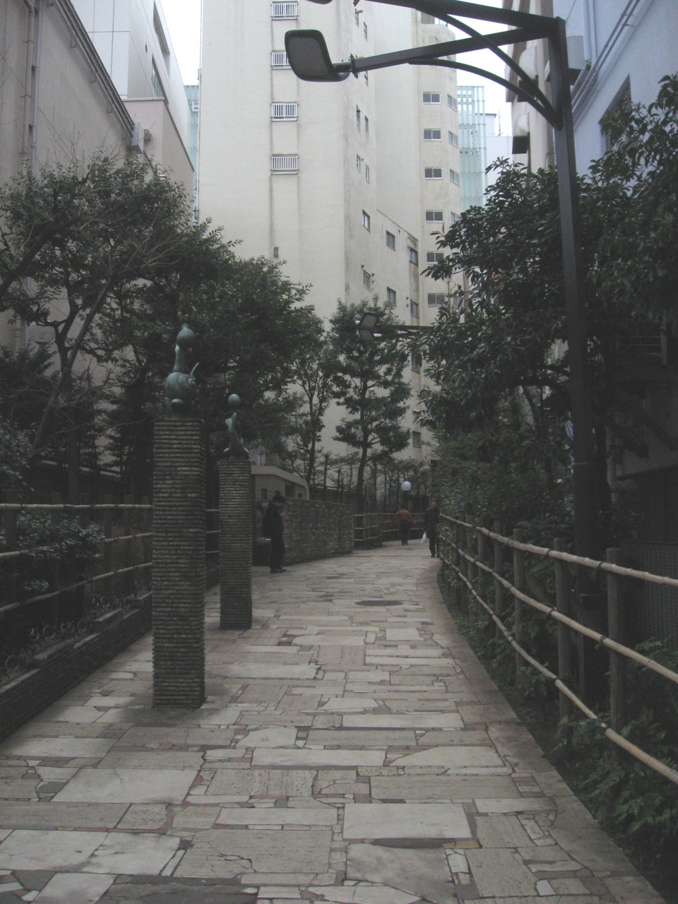 石畳の遊歩道に整備され、狭いけれども、樹木や四季折々の草花が繁る憩いのプロムナードに。