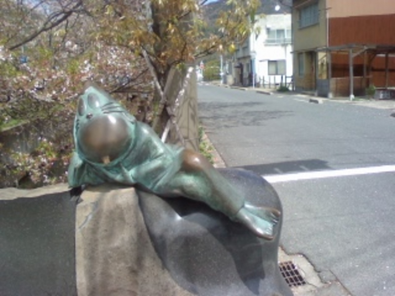通りの至るところに、妖怪ブロンズ像、等身大のネズミ男のブロンズ像などがあります。