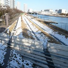 横浜のポートサイド地区、運河沿いに細長く続く公園です。周辺の高層マンションの住人向きの公園なのか・・・駅からのアクセスがあまりよくなく、大きな見所もありません。
