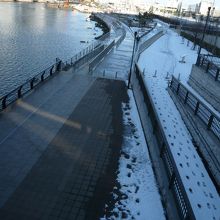 高島水際線公園にも直結していてこの地区のちょうどいいお散歩コースという感じですが、訪れたのが雪の次の日で見事に雪に埋もれていて、少し進んだだけで歩くのは断念してしまいました。また天気のいい日に再訪しようと思います。