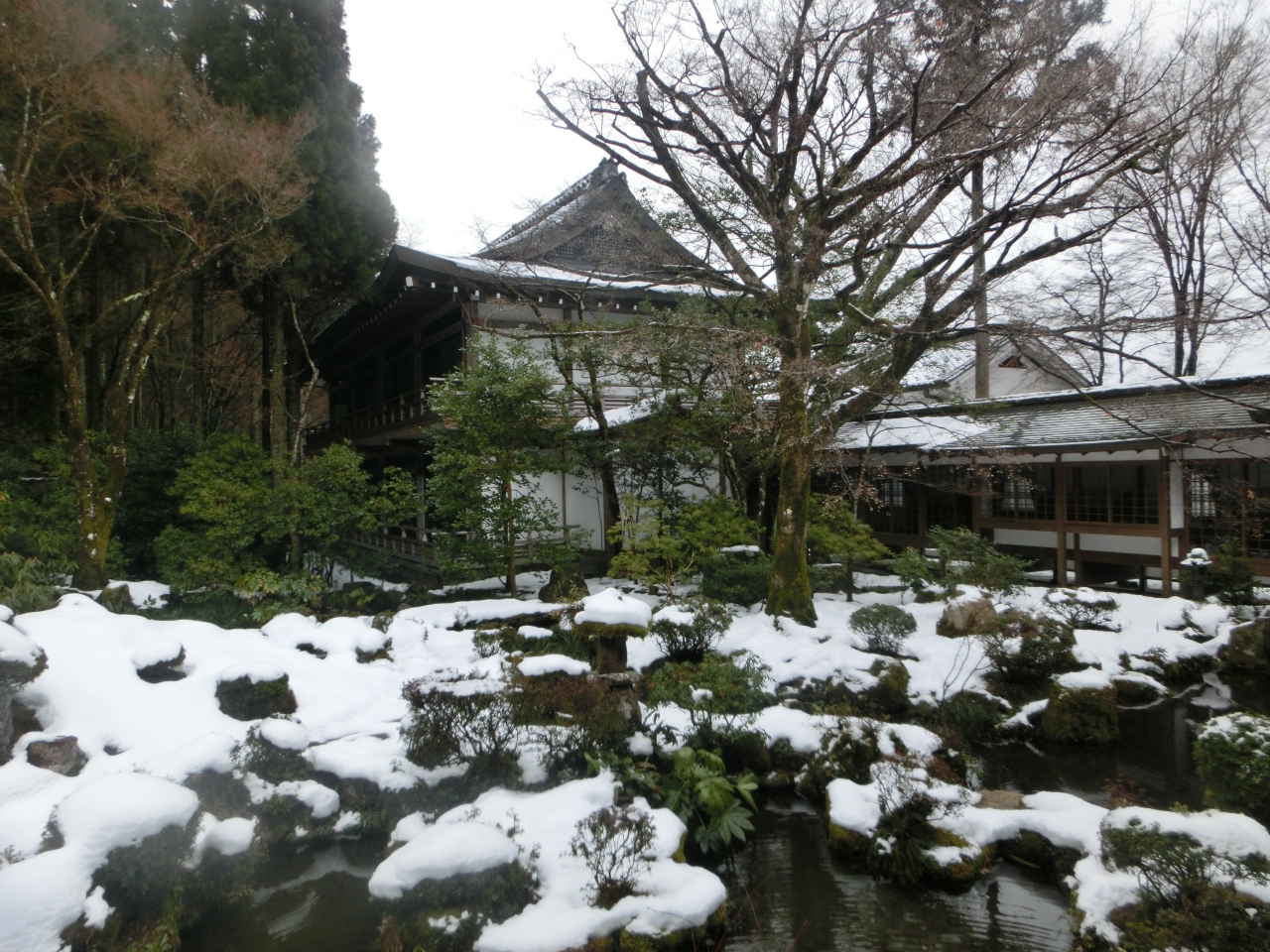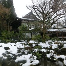 院内での板張りの廊下は、この季節さすがに寒かったのですが、庭園は雪が残りとっても情緒がありました。