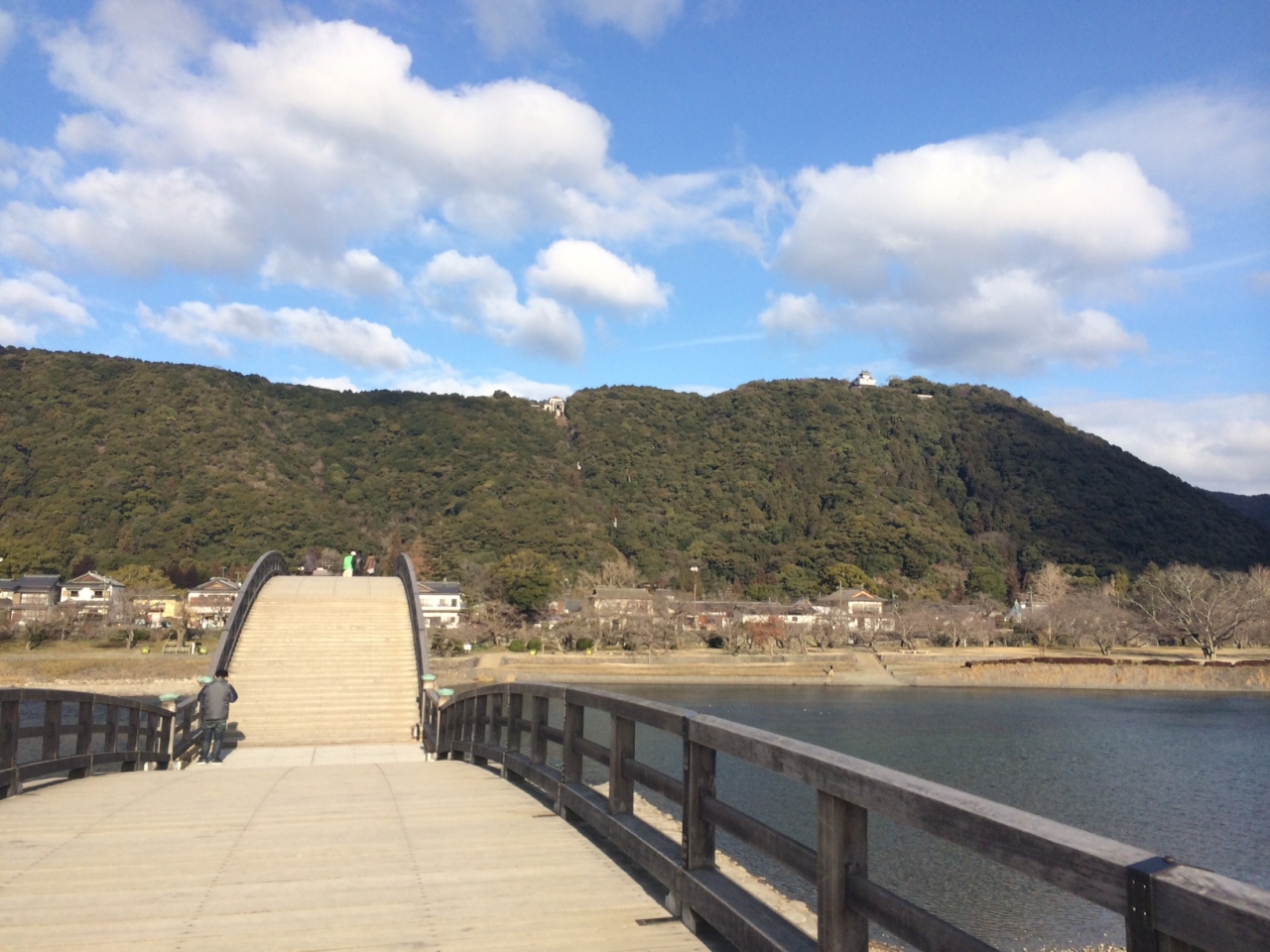 錦川の下流に架かる日本三大名橋錦帯橋の木造の上を歩くと300年程前の音がするようで