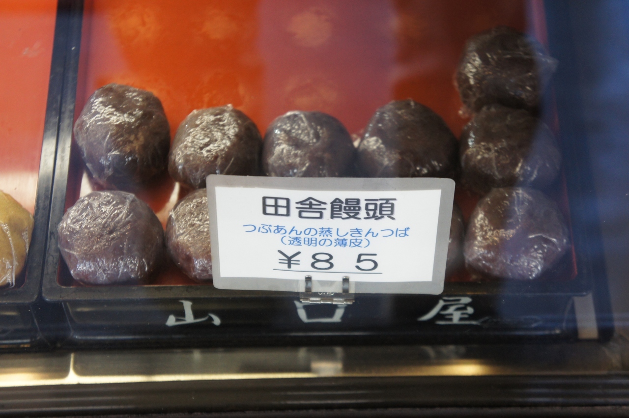 山口屋は、真壁市街ではあるんですが、中心部からはちょっと外れ。品数が少ししかないなあと思ったら、人気の大福なんかはもう売り切れなんだとか。では仕方がないので、田舎まんじゅう(つぶあんの蒸しきんつば)をいただきました。ただ、これでもお店の実力は十分感じられました。おいしいです。