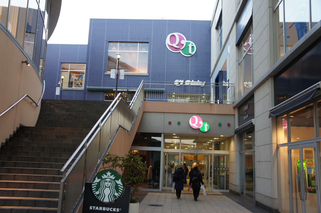 筑波研究学園都市は、計画的に作られた街であり、古くからの商店街などはまったくありません。その代りに整備されたのが、このつくばクレオスクエア。CREO(クレオ)、MOG(モグ)、Q't(キュート)の3つの部分から構成された商業施設で、つくば駅に一番近いのは、Q't(キュート)。若い層向けのファッションや装飾品雑貨店が入っています。
