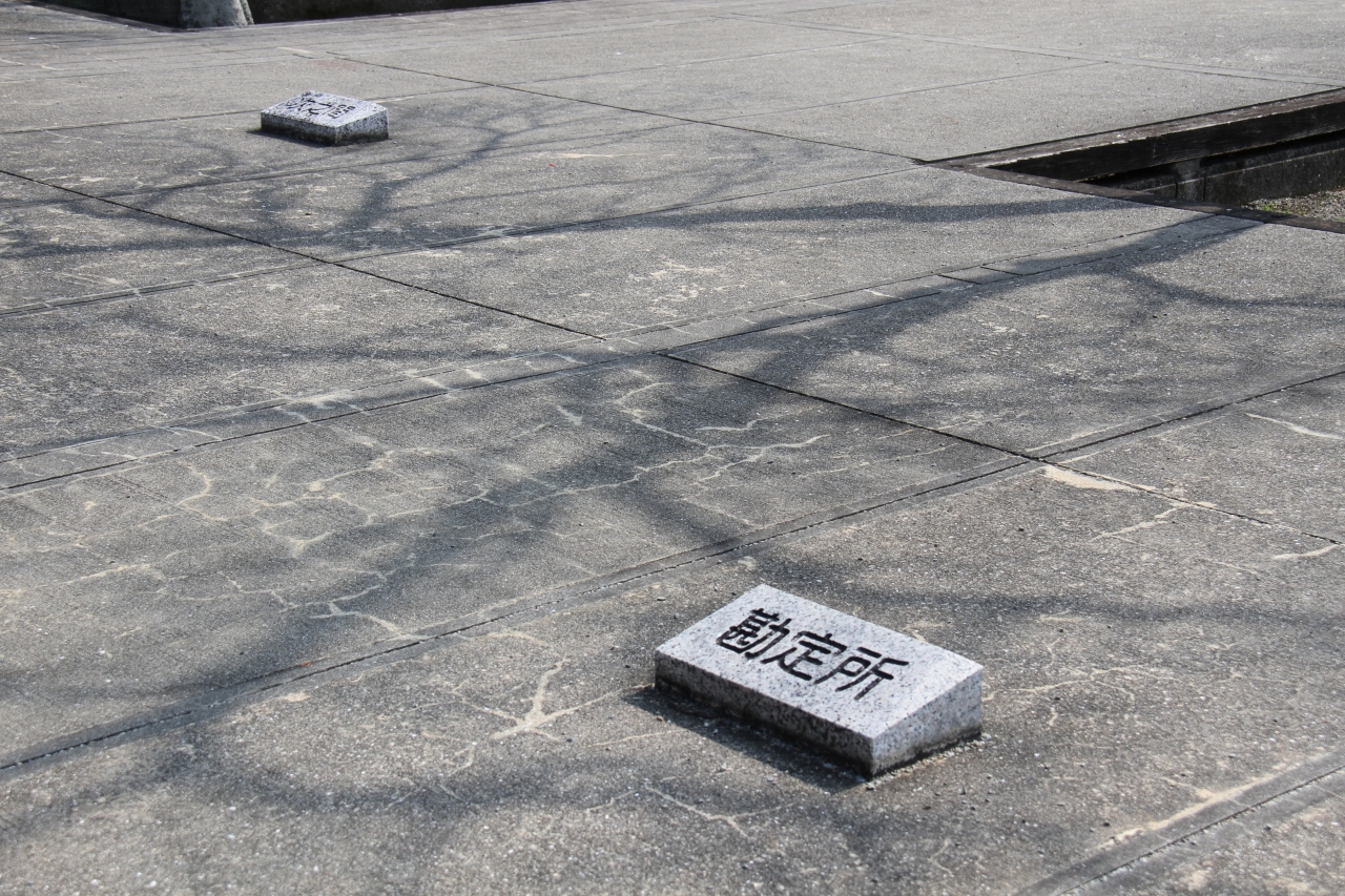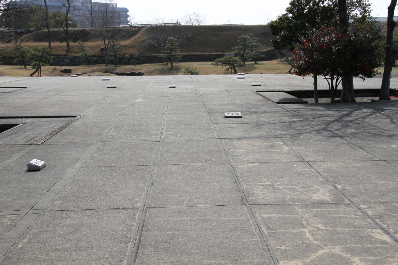 当時のものが何なのかも分かりませんし、広い土地には建物の名前が刻まれた石札が埋め込まれているだけです。