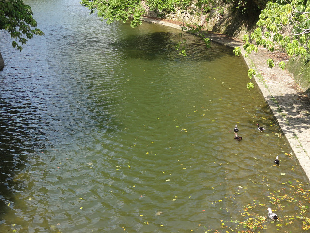 久慶門から歩いてすぐのところにあります。600年も前に造られた人工池だそうですが、首里城の側にこんな場所があったのですね。円鑑池と橋を挟んで繋がってました。水はあまり綺麗ではありませんが、緑も多くほっと一息つける感じがしました。橋の上から大きな鯉やアヒル、鴨など見えました。散策出来るよう水辺に降りて行く道もありましたが、眺めただけで終わりました。