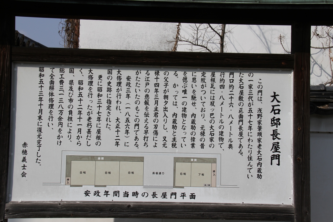赤穂市「大石良雄宅跡」は門だけしかありませんが、当時のことを考え数奇な運命があったことを思うと感じ入るものがあります。