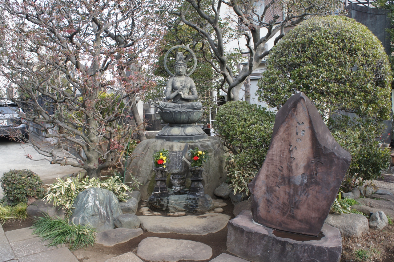 本堂前にある六十六部造立石造閻魔王坐像及び両脇侍像は、台東区の有形文化財。小さいですが、牡丹園が整備されていて春が楽しみです。