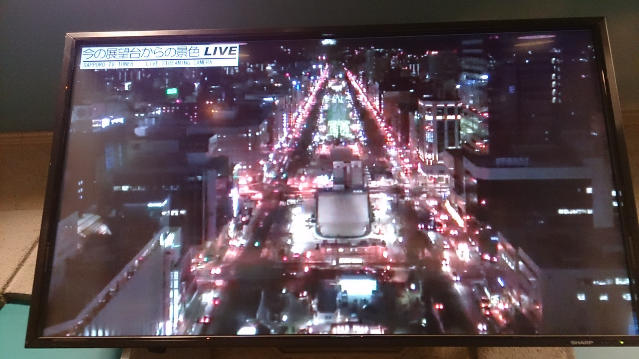 テレビ塔の麓には、冬の時期だったこともあり、スケートリンクが設営されており、チビッコやカップルがスケートを楽しんでいました。リンクの中央には、大きな木があり、テレビ塔同様、ライトアップされていて綺麗でした。