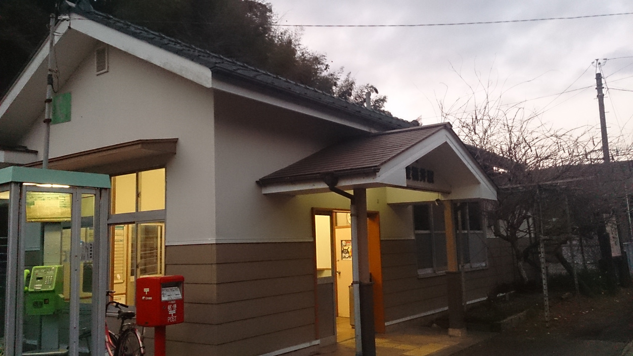 国道55号線沿いにある駅になります。特にロータリーのようなスペースはなく、駅舎がそのまま道路に面しているような感じです。駅舎は無人駅のようですが、最近までうどん屋が入居していましたが、いつの間にか閉まっていました。なお、トイレはホーム側にあります。