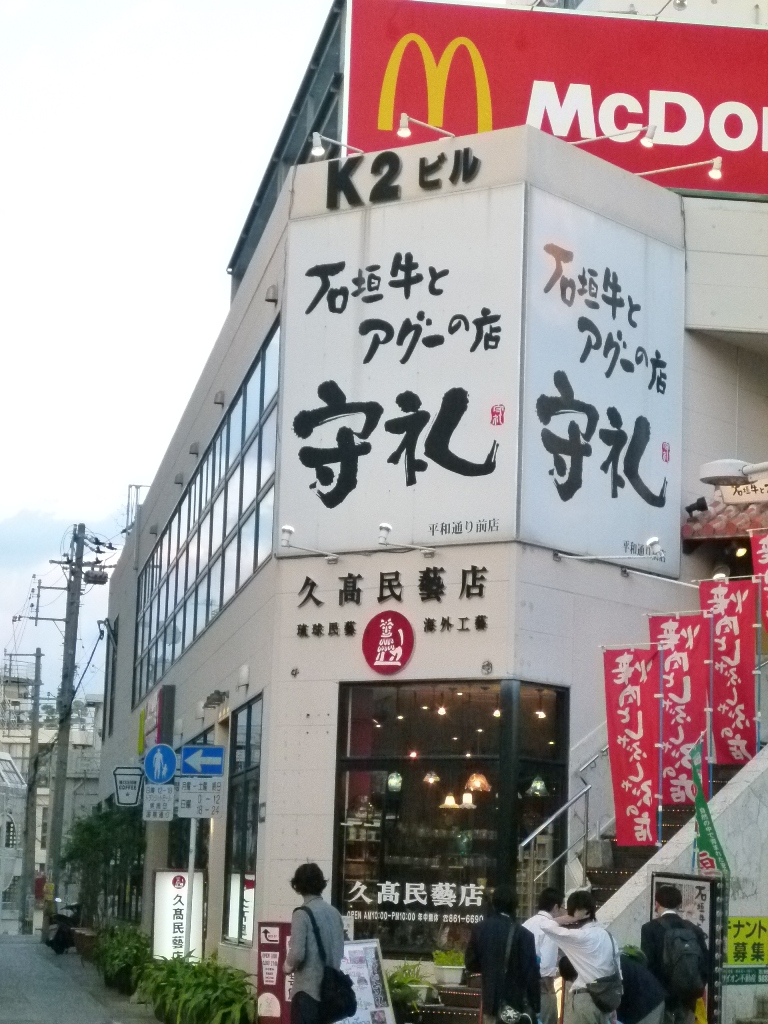 国際通りの「沖縄三越」の右隣にあります。1階にありますので直ぐわかりますよ。沖縄伝統の染織物、壺屋焼、ガラスなど品揃いが豊富な民芸店です。価格はピンからキリまでありますが、きっと気にいる土産がありますよ。