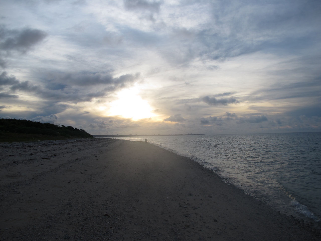 竹富港からみて、島の一番奥にあります。朝日が見たかったので、レンタサイクルで6時ごろに浜に行きました。二人ほどほかのお客さんがいましたが、とても空いていました。
