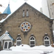 外観の形だけでもなんとなくヨーロッパの雰囲気が漂っている教会です。