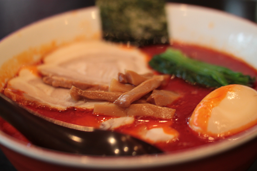 久しぶりに行って来ました。百歩の「赤百歩」。養生スープが独特の真っ赤になったものですが、見た目ほど強烈に辛いというわけではありません(個人差あり)。スープはもちろん麺も、そしてトッピングするチャーシューに味玉まで、ひとつひとつの素材もその調和も絶妙です。昼時さえ外せば最近は並ばずに食べらることも多そうです。