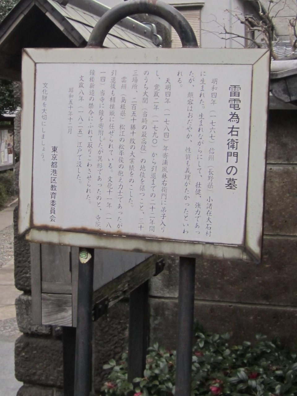 雷電為右衛門の墓は、東京都港区赤坂7丁目にある報土寺の中にあります。