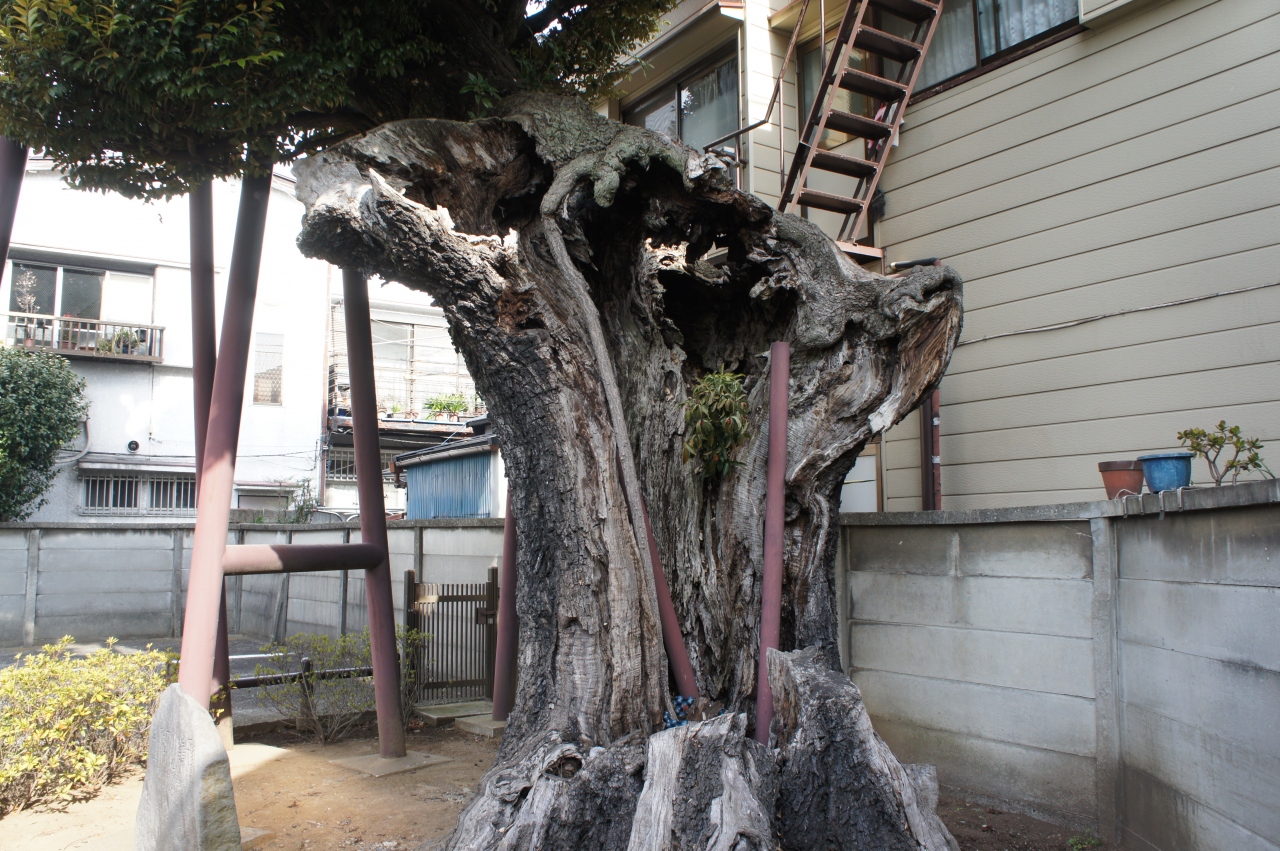 延命院は、日蓮宗の寺。日暮里駅から谷中銀座に向かう途中。こんなところにお寺があったかなあとおもったら、門は小さいのに、奥にはそれなりの敷地のお寺がありました。境内には、樹齢600年を超えるといわれる大椎(都指定天然記念物)があります。