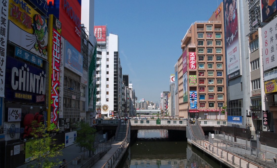 橋からよく見える、グリコネオンは、 有名で観光スポットの戎橋です。橋の南側に操り芝居の小屋があったことから操橋(あやつりばし)とよばれたこともあったそうです。人は大変多くひっかけ橋とも呼ばれるそうです。