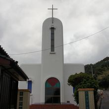 教会の建物は国道からすぐ。最初に聖堂が創建されたのは明治36年のことですが、老朽で再建。現在の聖堂は昭和52年に建てられたもの。教会の内部には、最後の晩餐をかたどった飾り付けがあって、目を引きました。