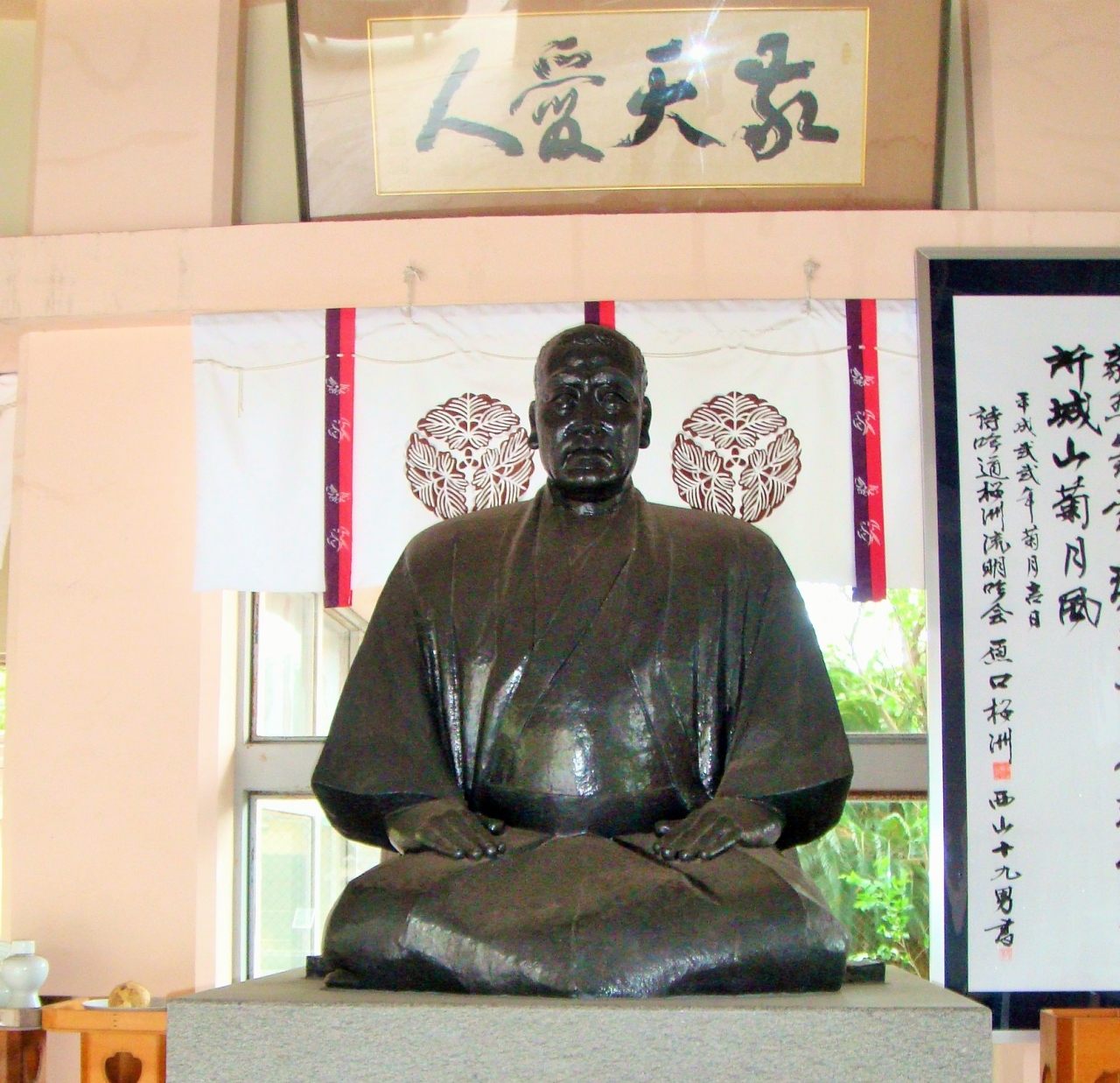 拝殿はコンクリート造りで趣はありませんが、中には犬を連れた西郷さんの像や、座像があります。