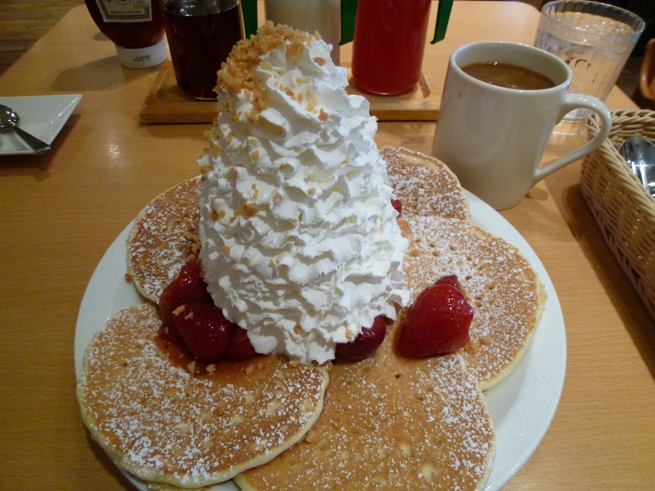 一番人気のパンケーキ「ストロベリー・ホイップクリーム マカデミアナッツ」を食べました。